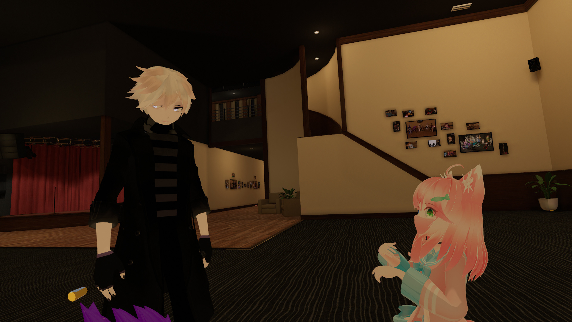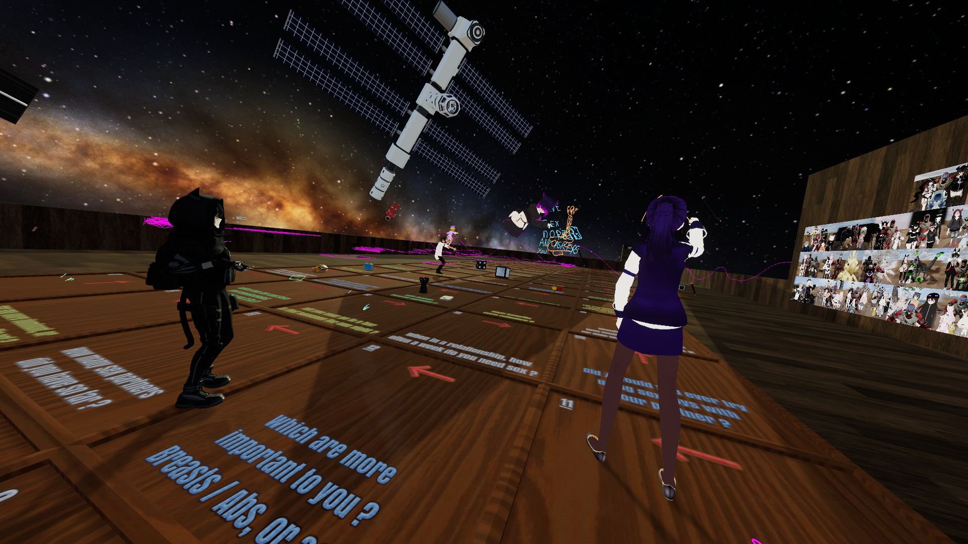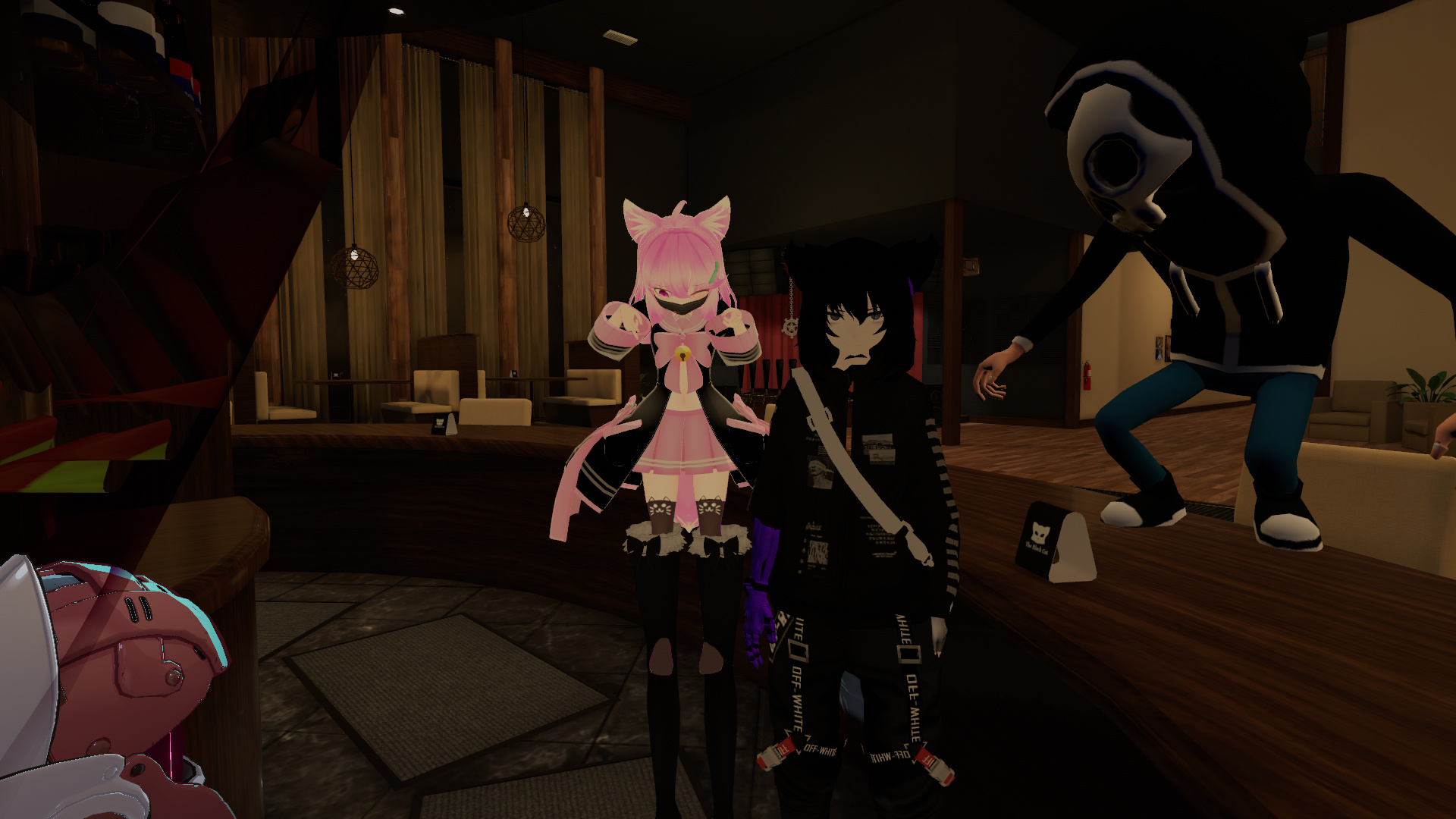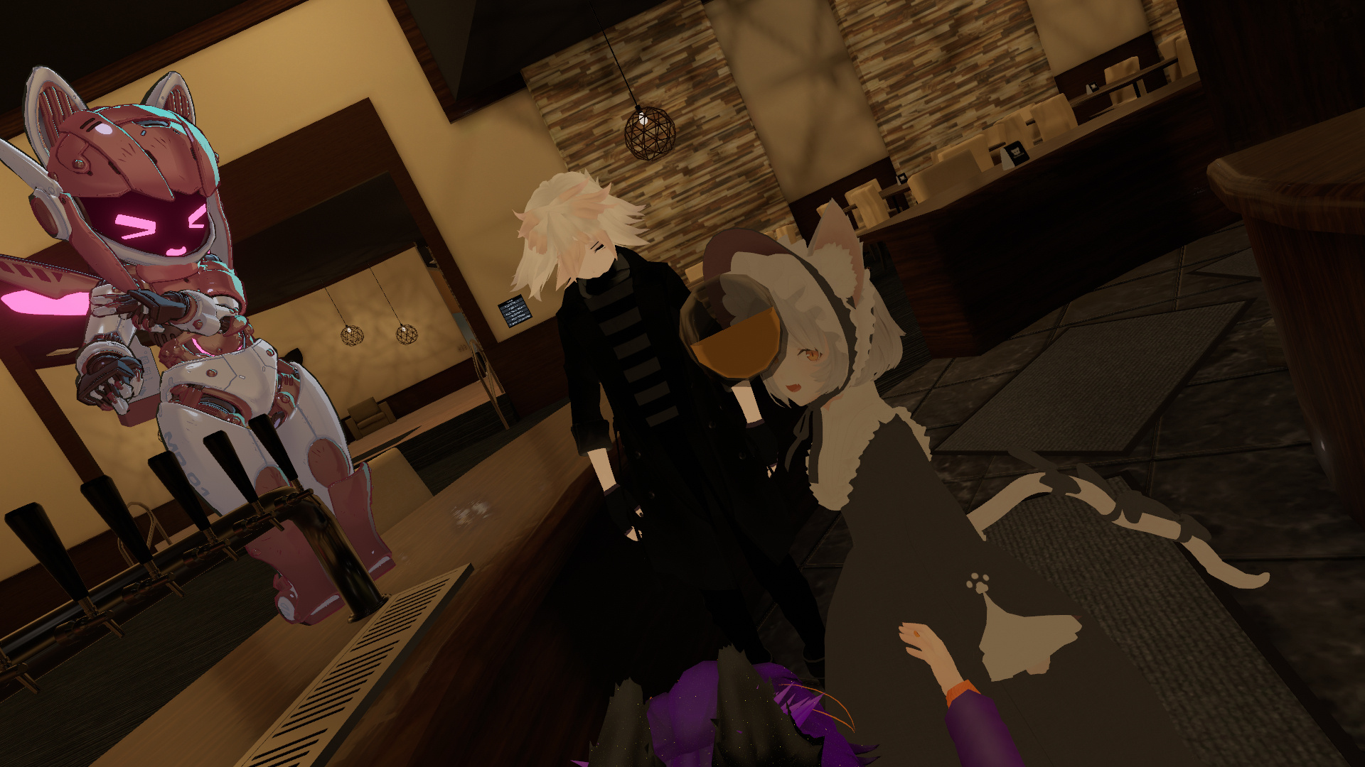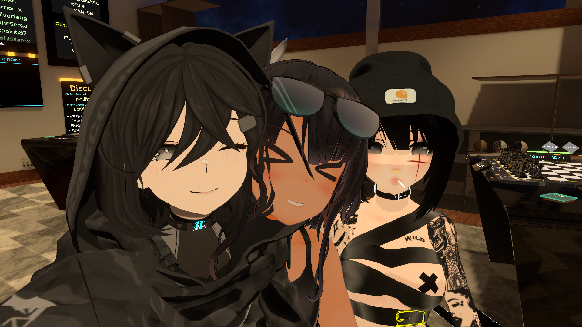 Pictures from my second time in VRchat. Pictured is Me, Vomo, and Aislyn. Stormy was also there, but isn't pictured.