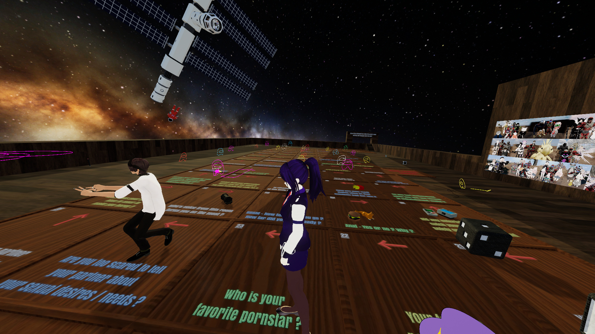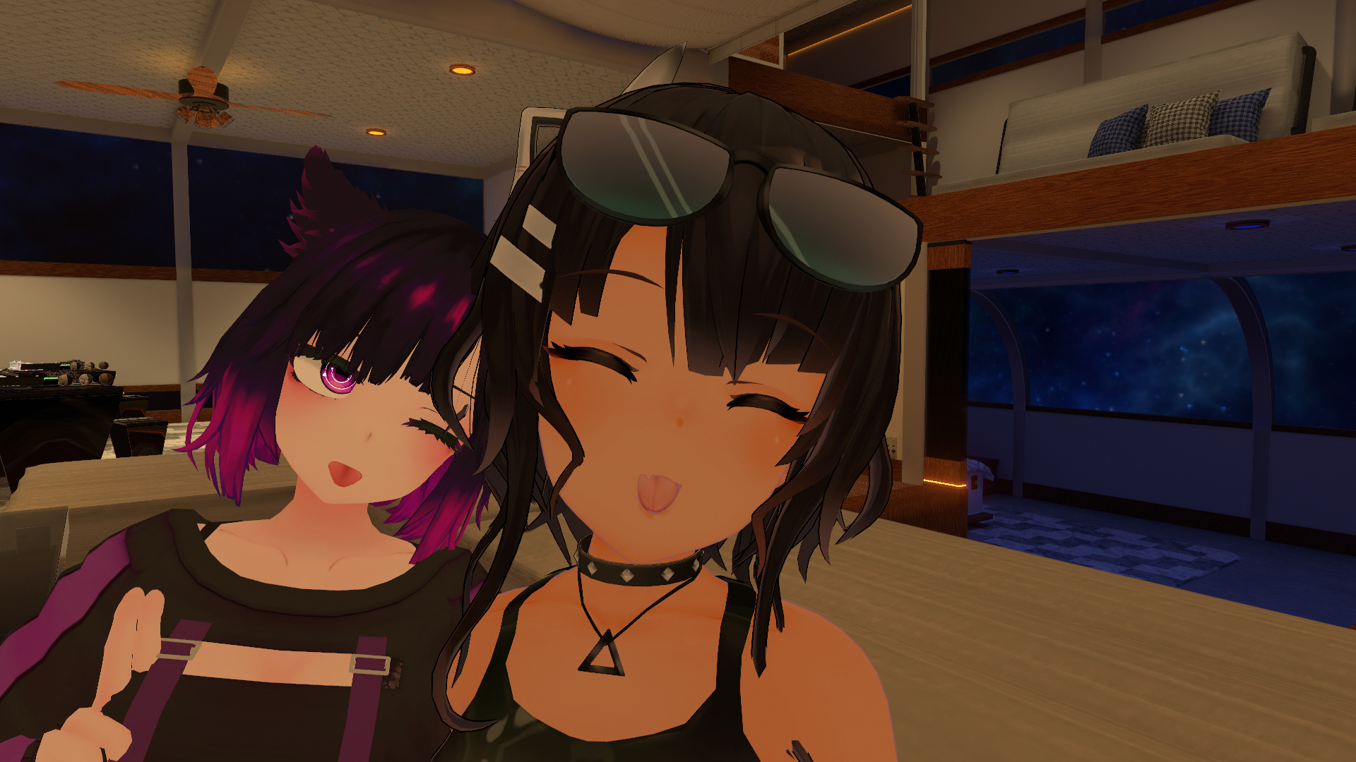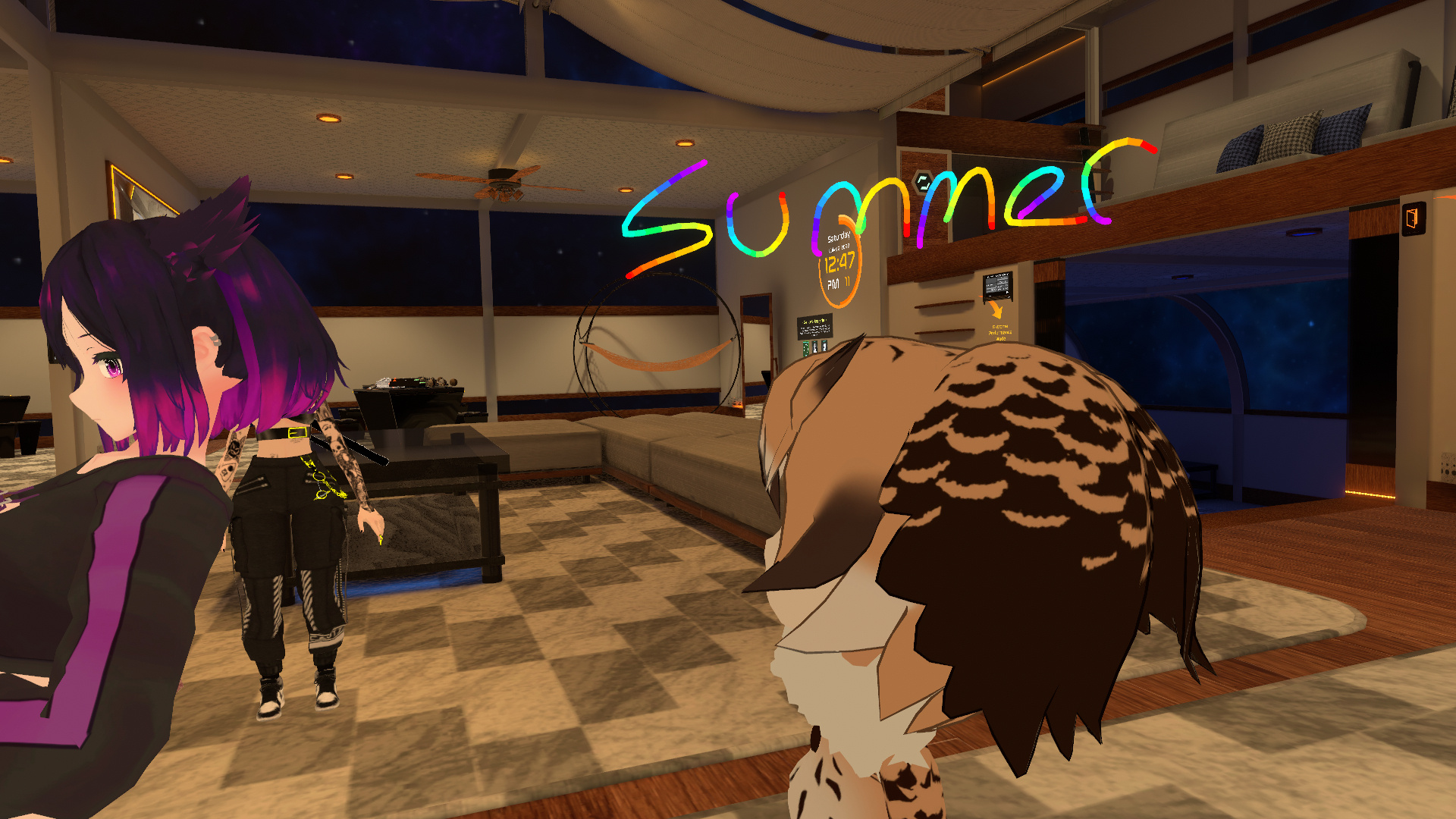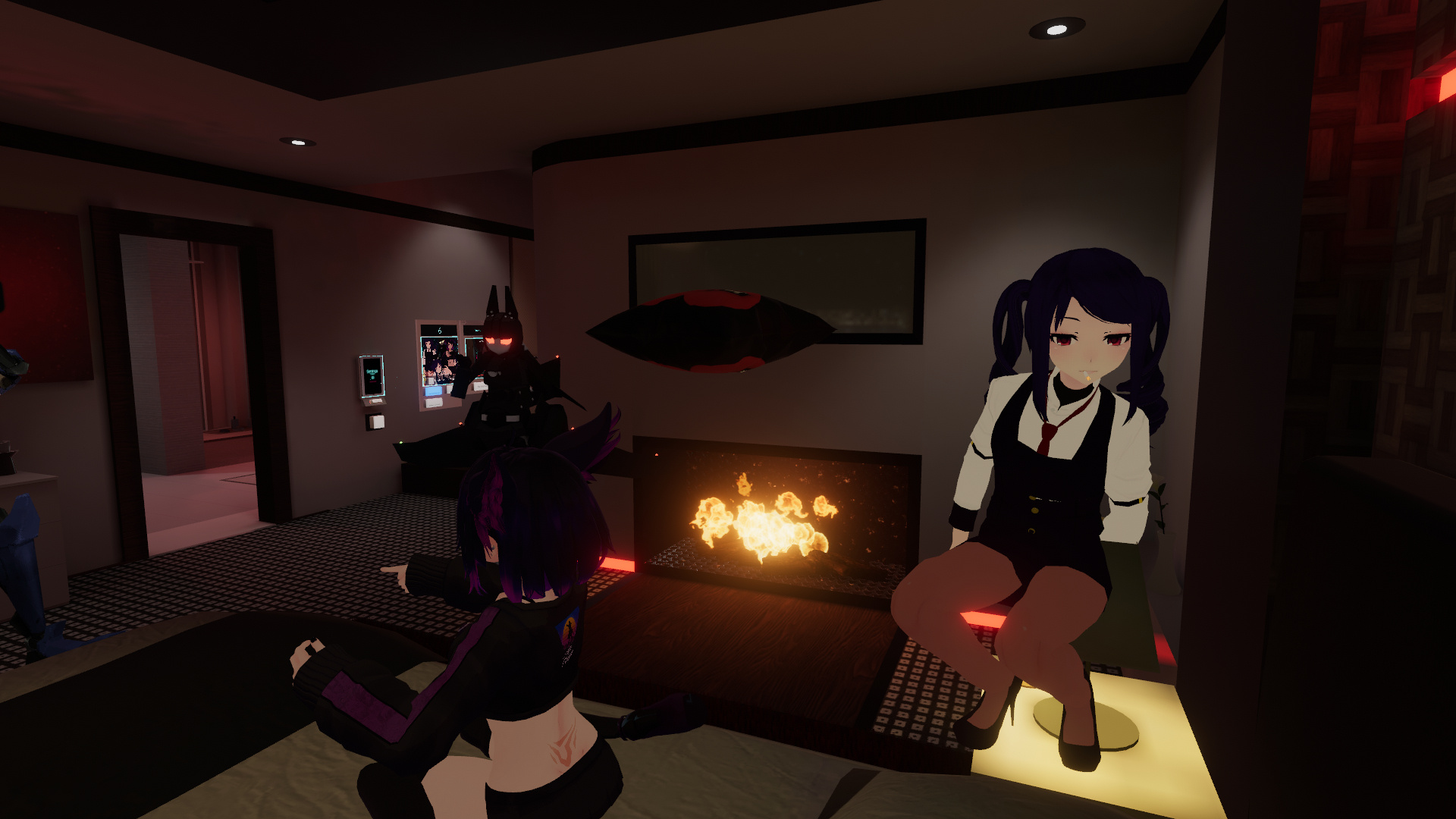 Pictures from my second time in VRchat. Pictured is Me, Vomo, and Aislyn. Stormy was also there, but isn't pictured.