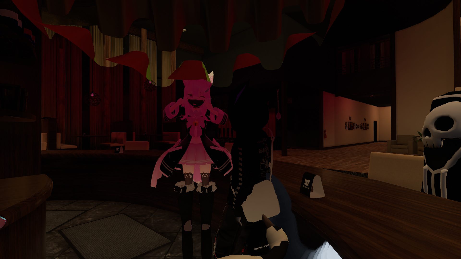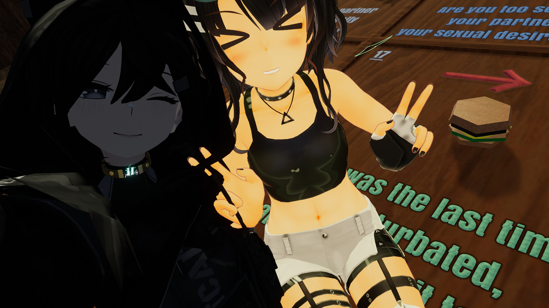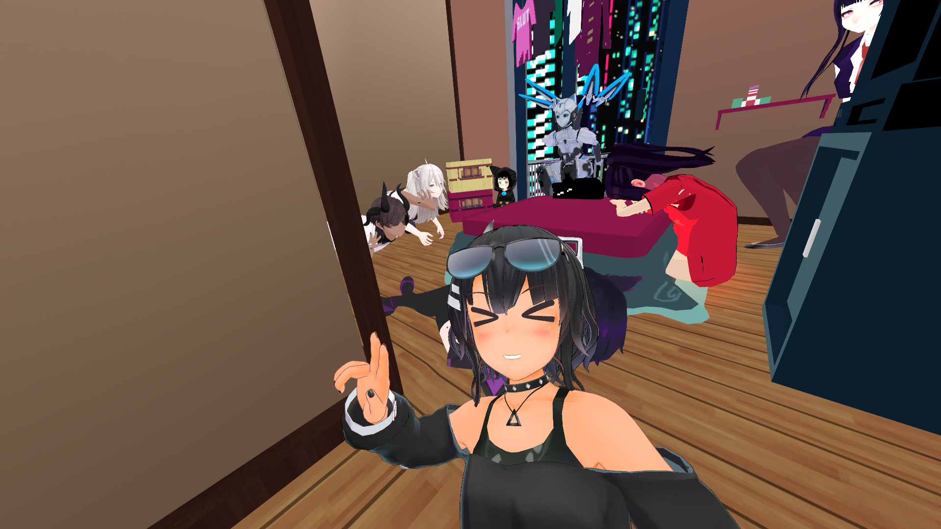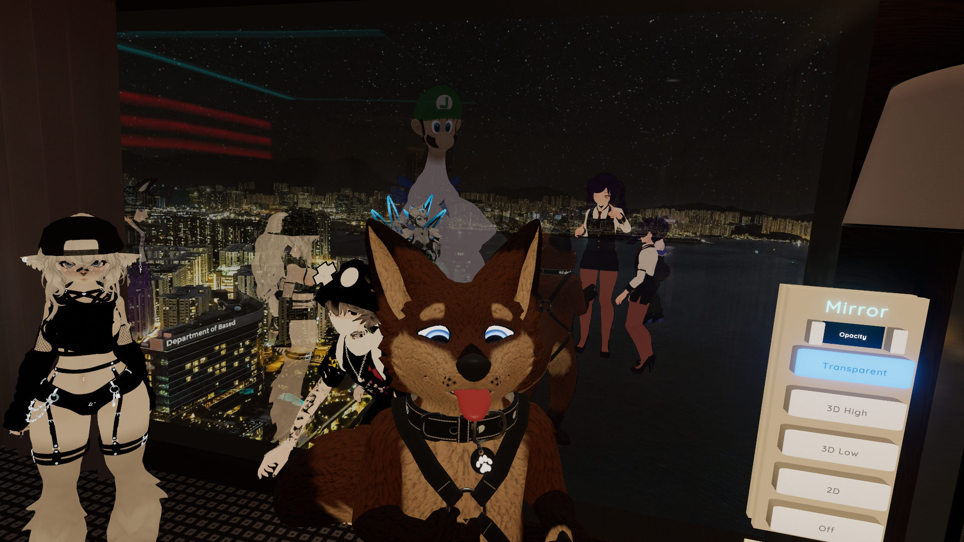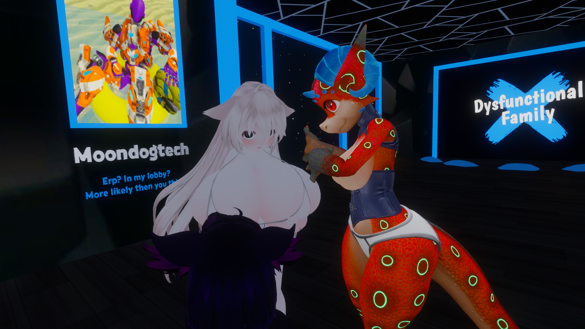 Pictures from my second time in VRchat. Pictured is Me, Vomo, and Aislyn. Stormy was also there, but isn't pictured.