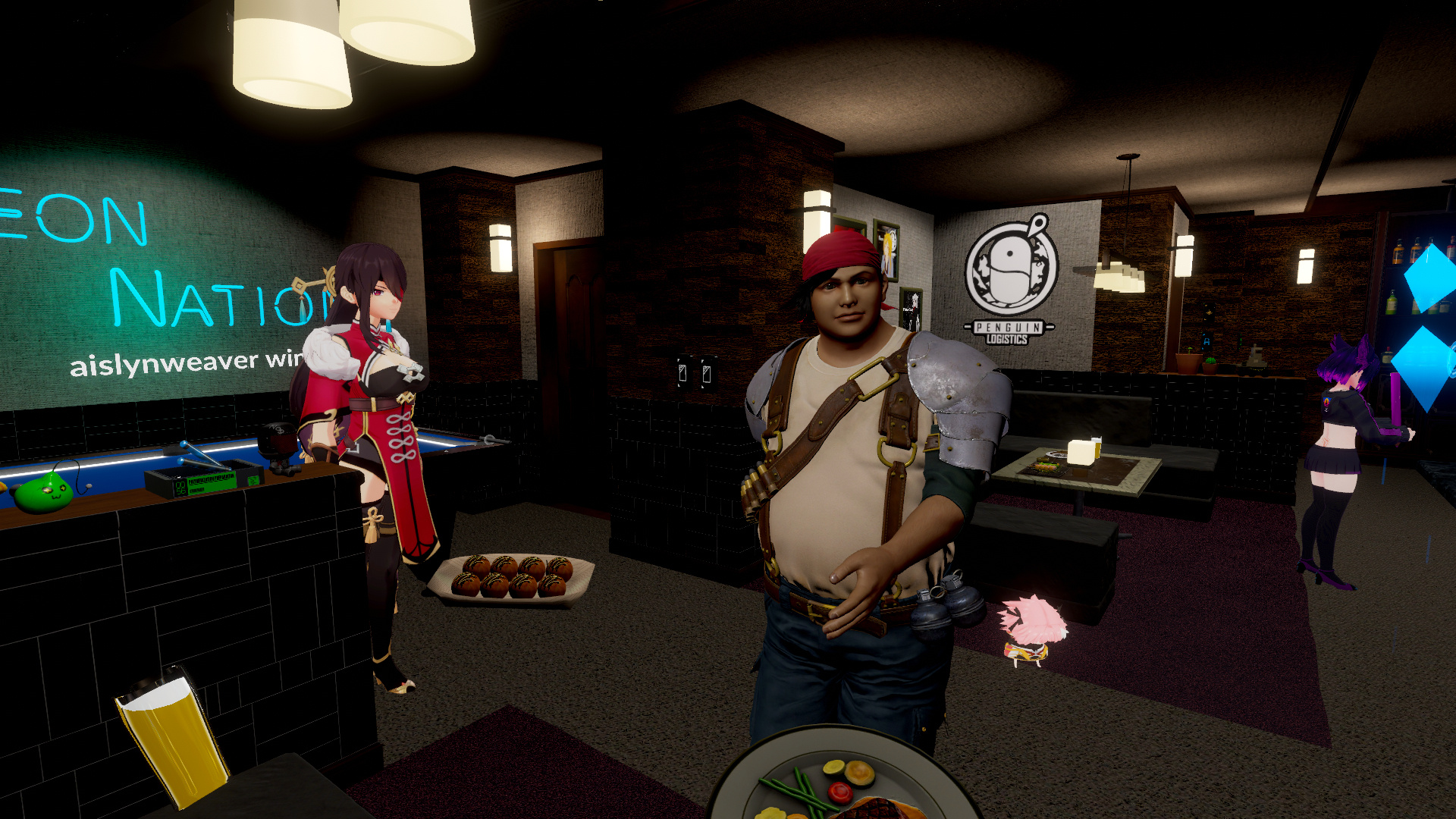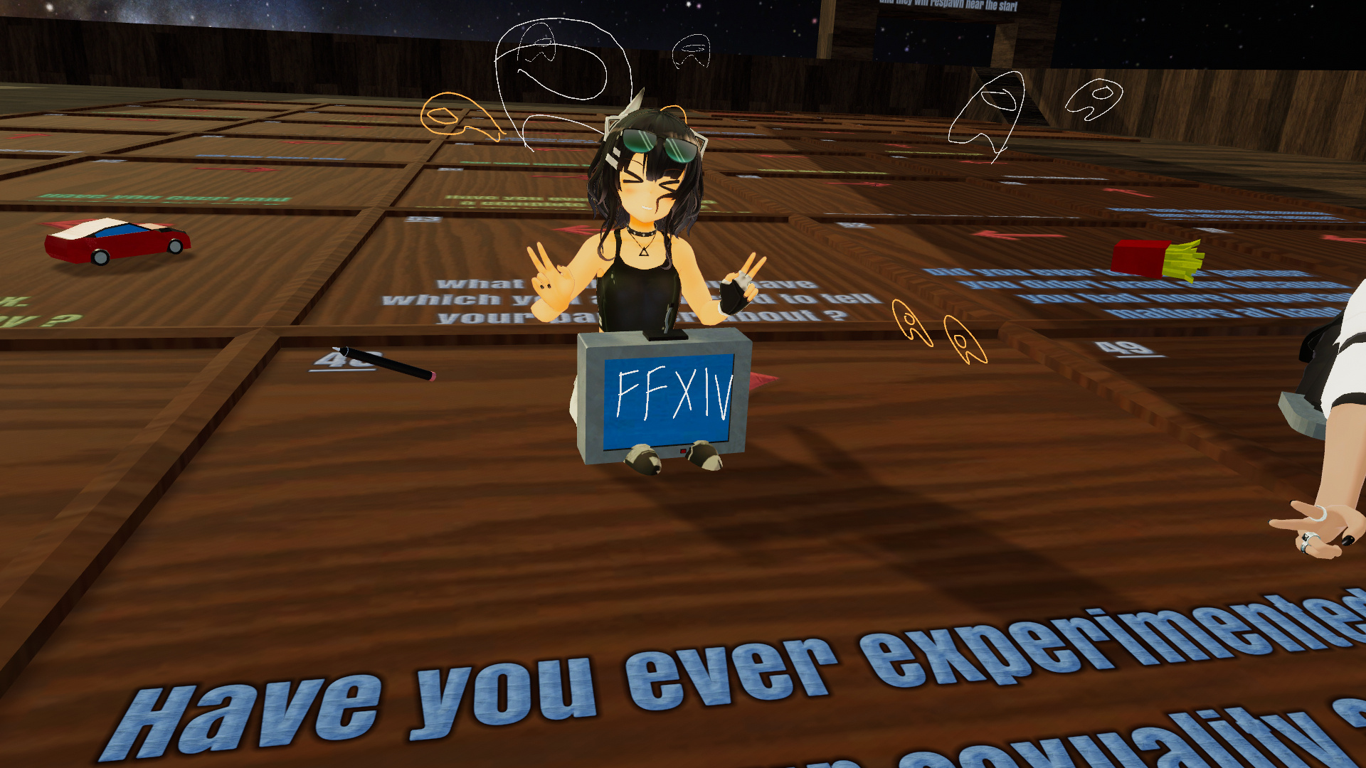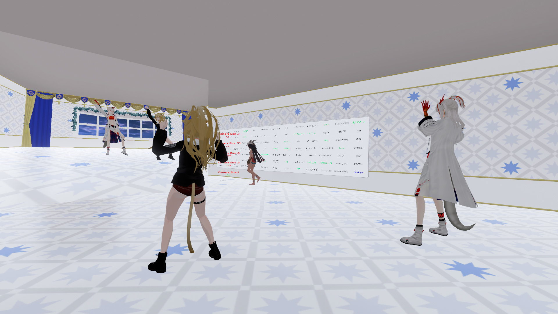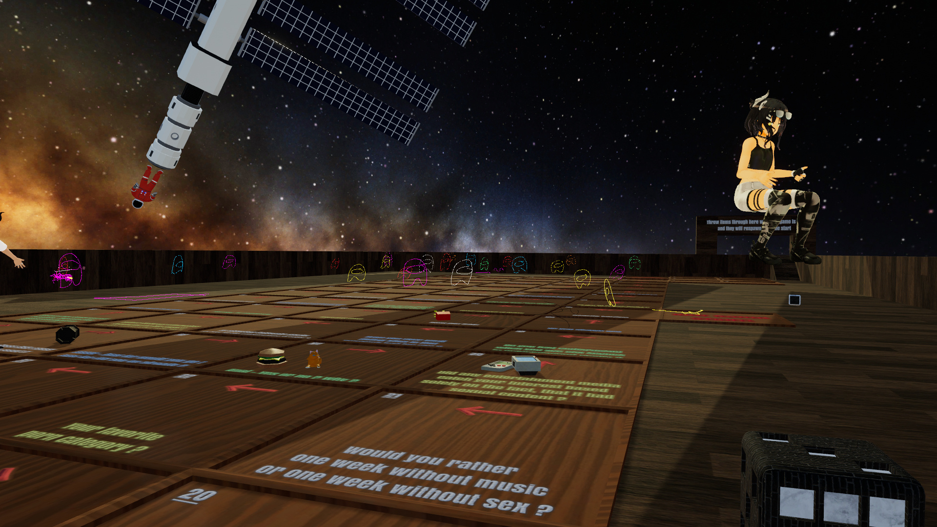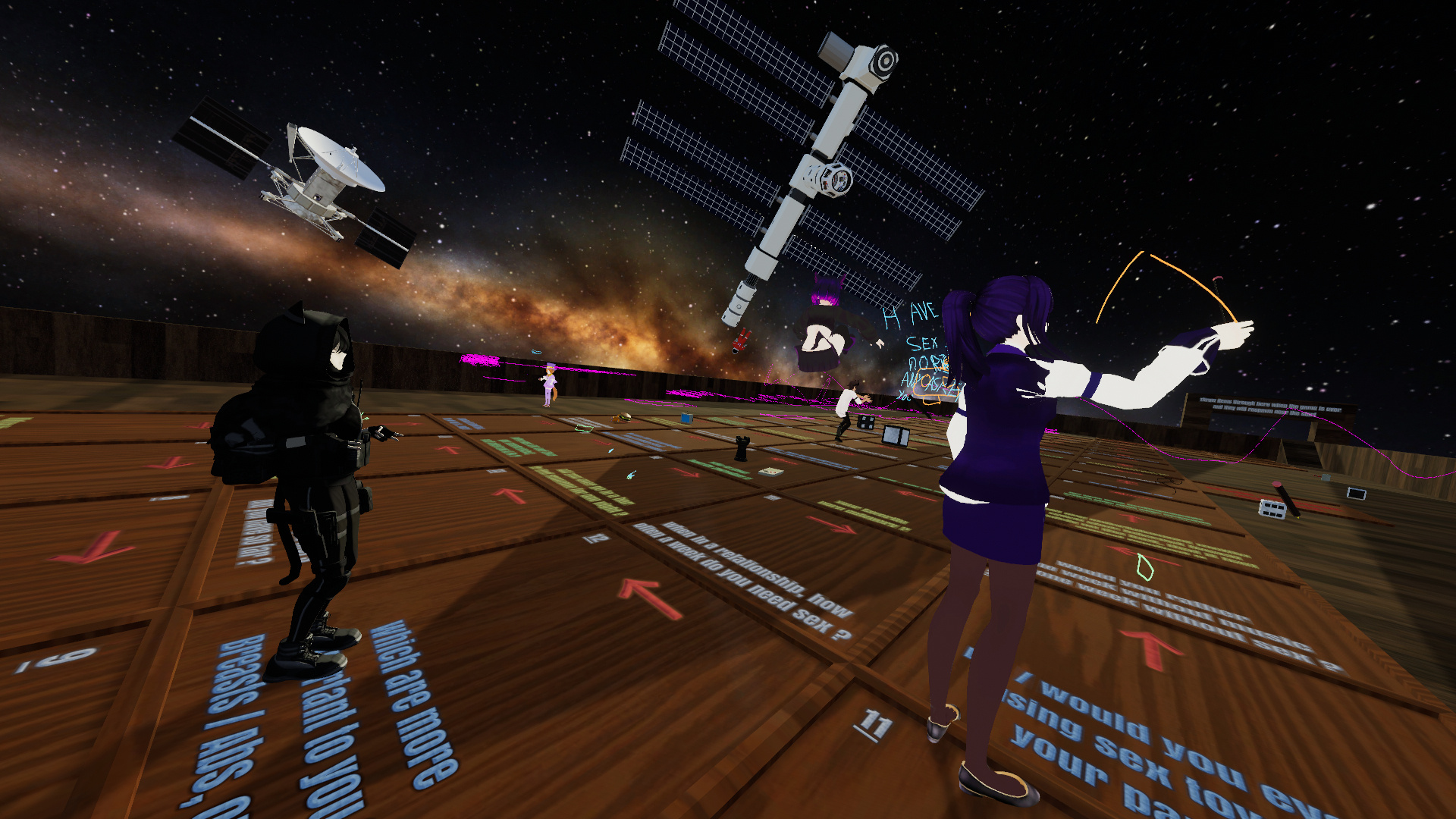Pictures from my second time in VRchat. Pictured is Me, Vomo, and Aislyn. Stormy was also there, but isn't pictured.