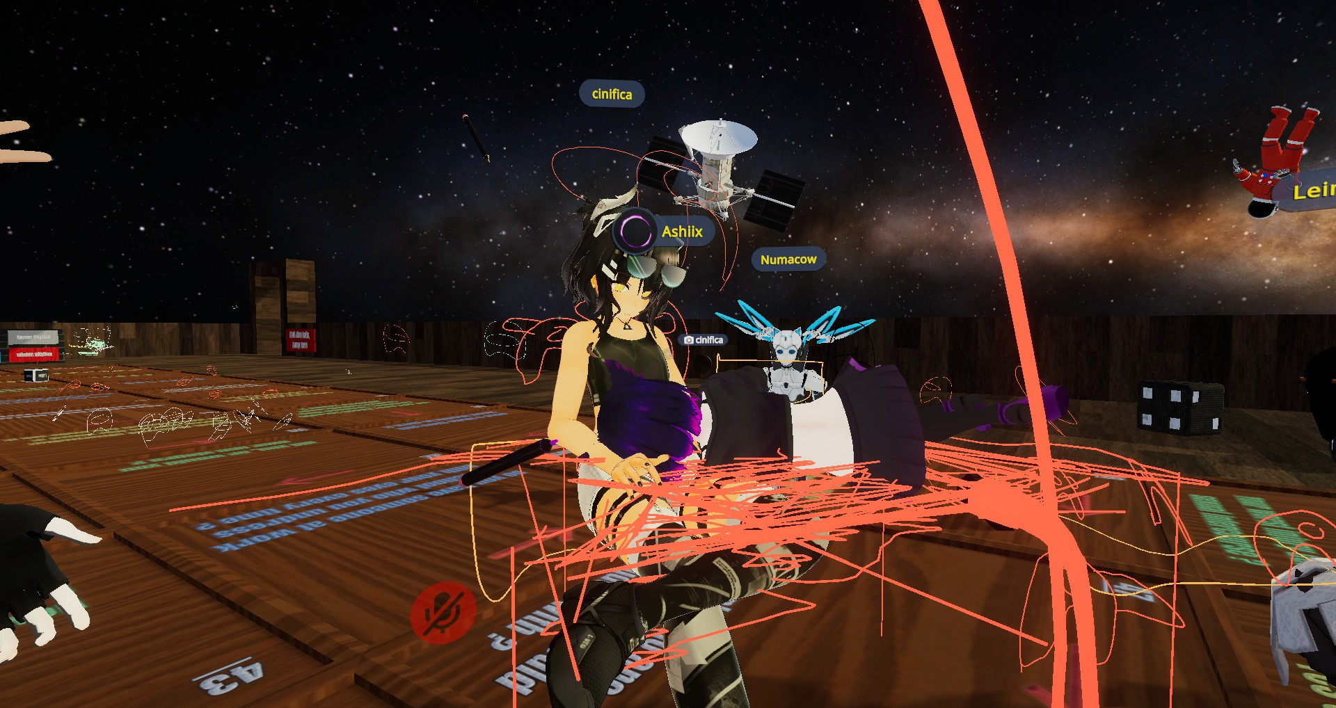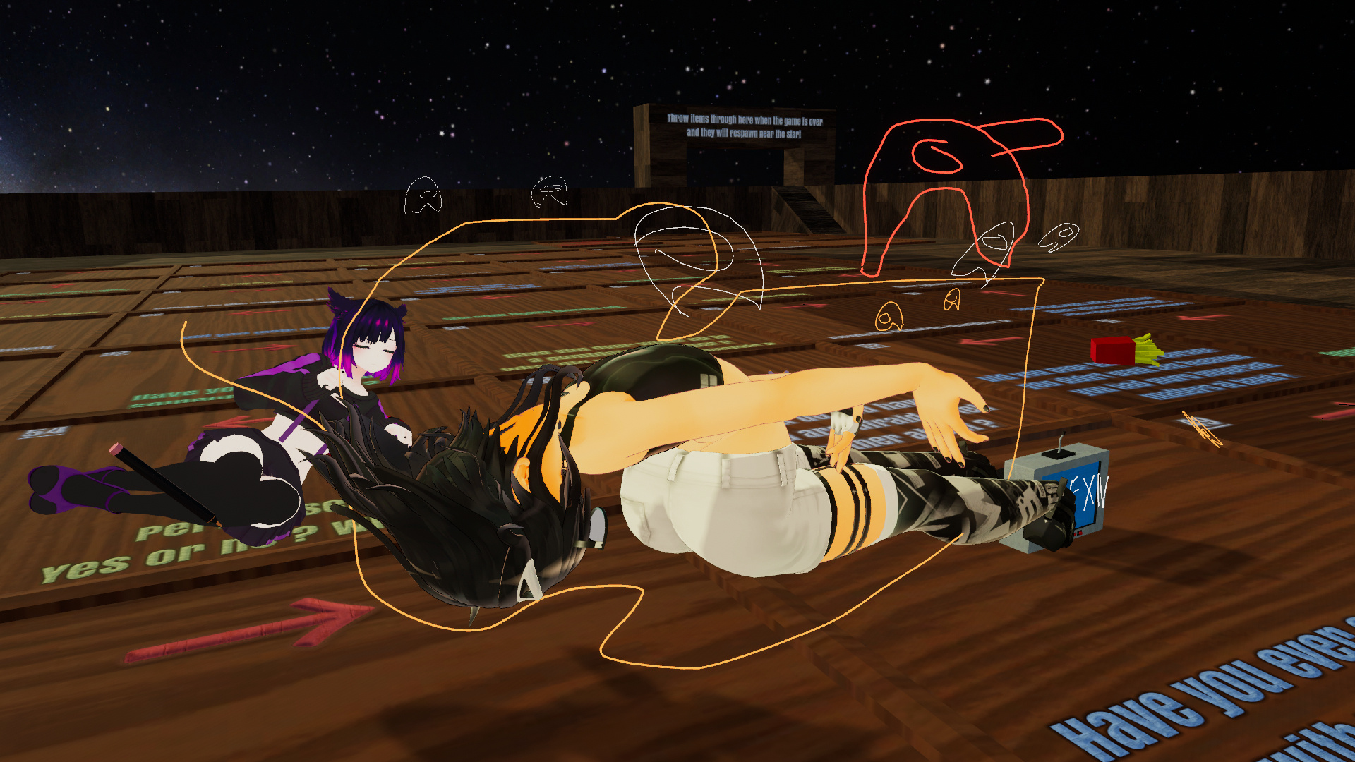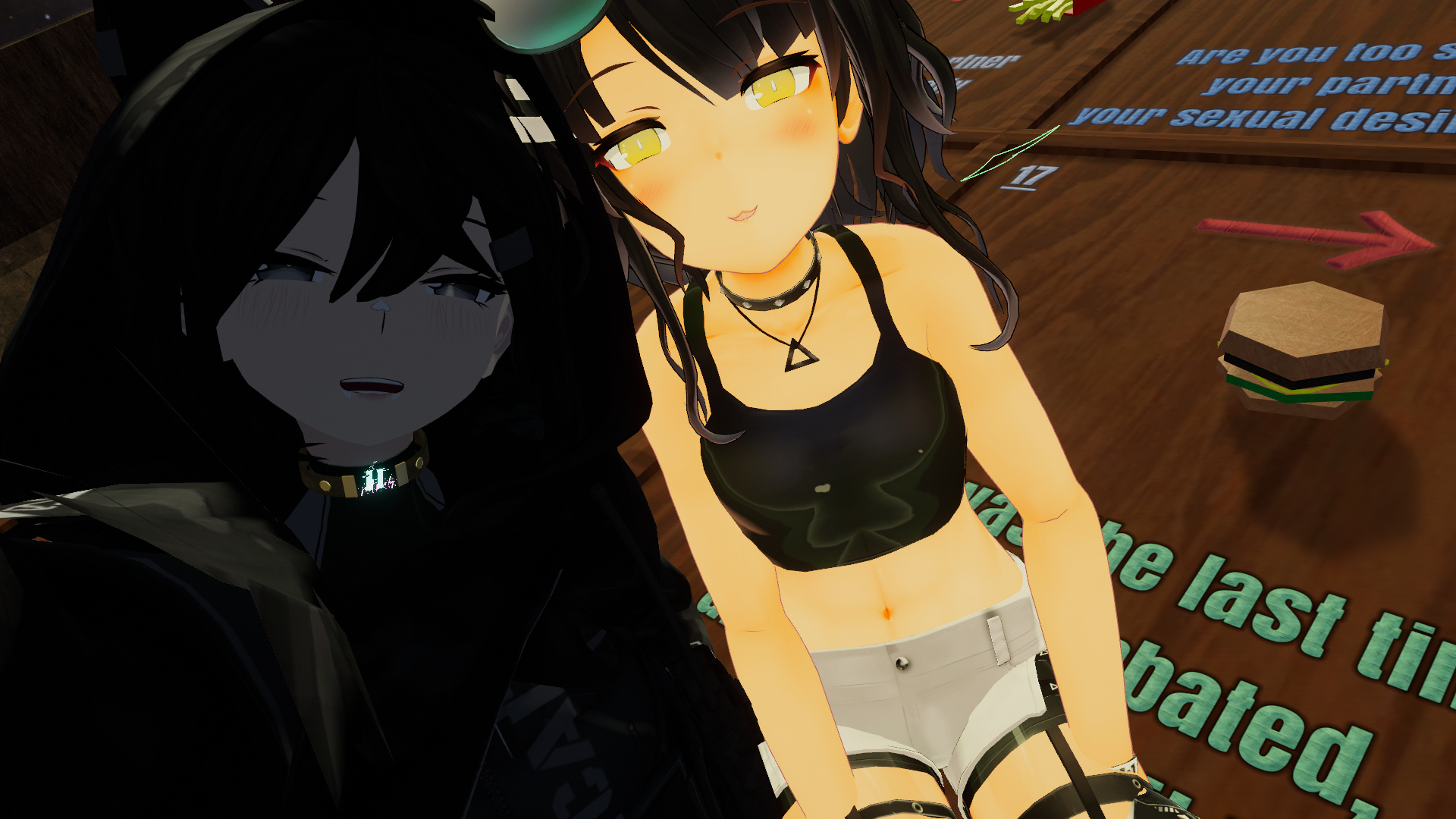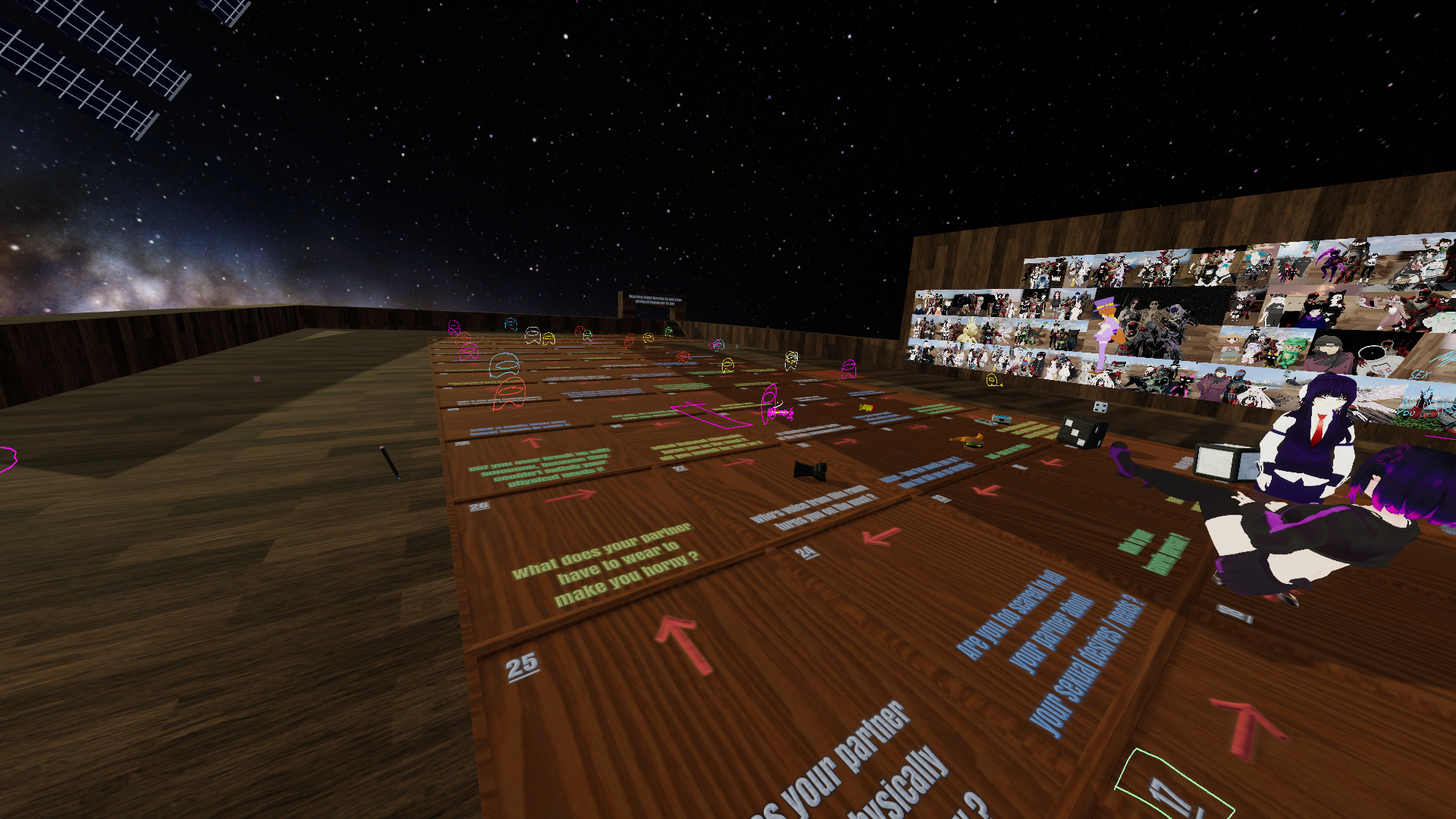 Pictures from my second time in VRchat. Pictured is Me, Vomo, and Aislyn. Stormy was also there, but isn't pictured.