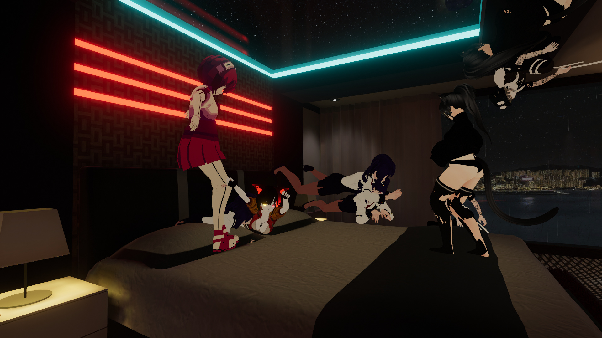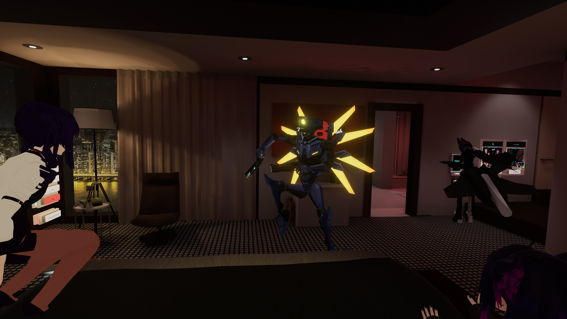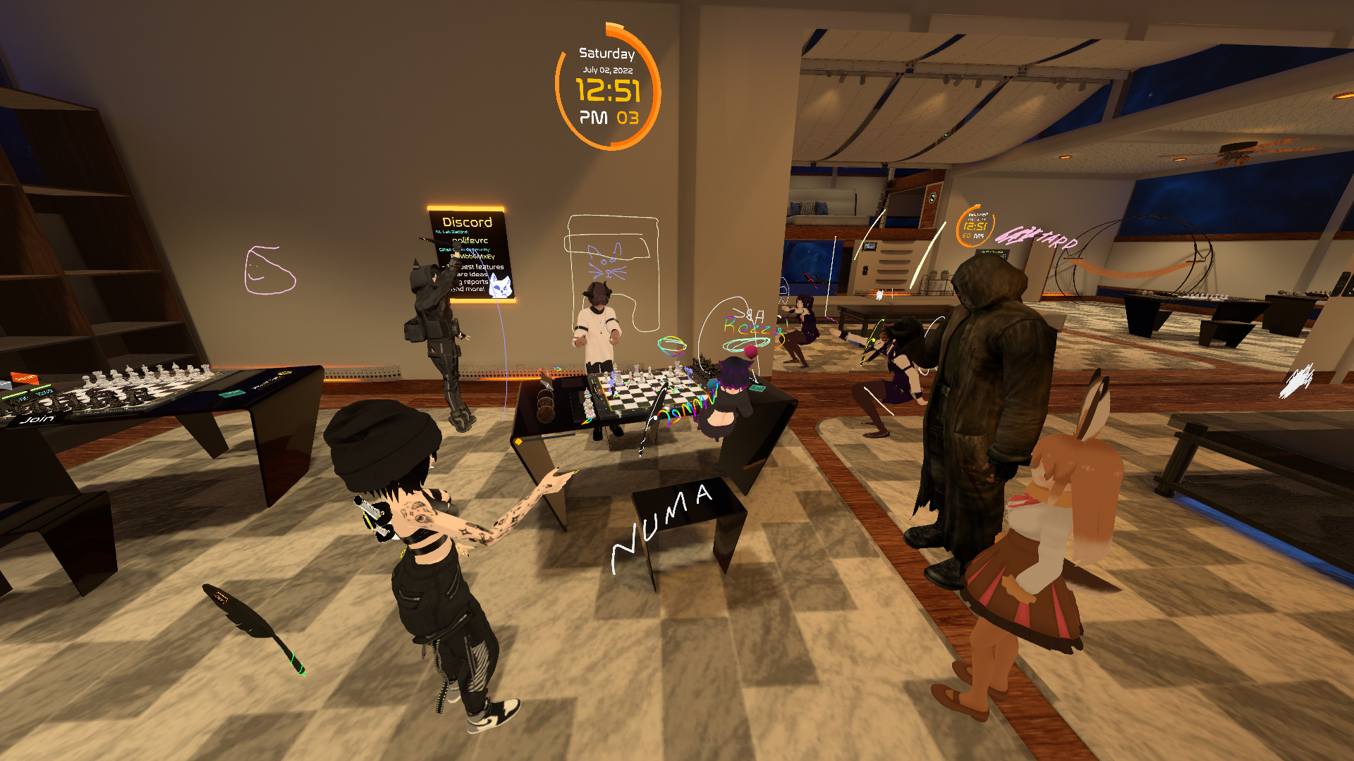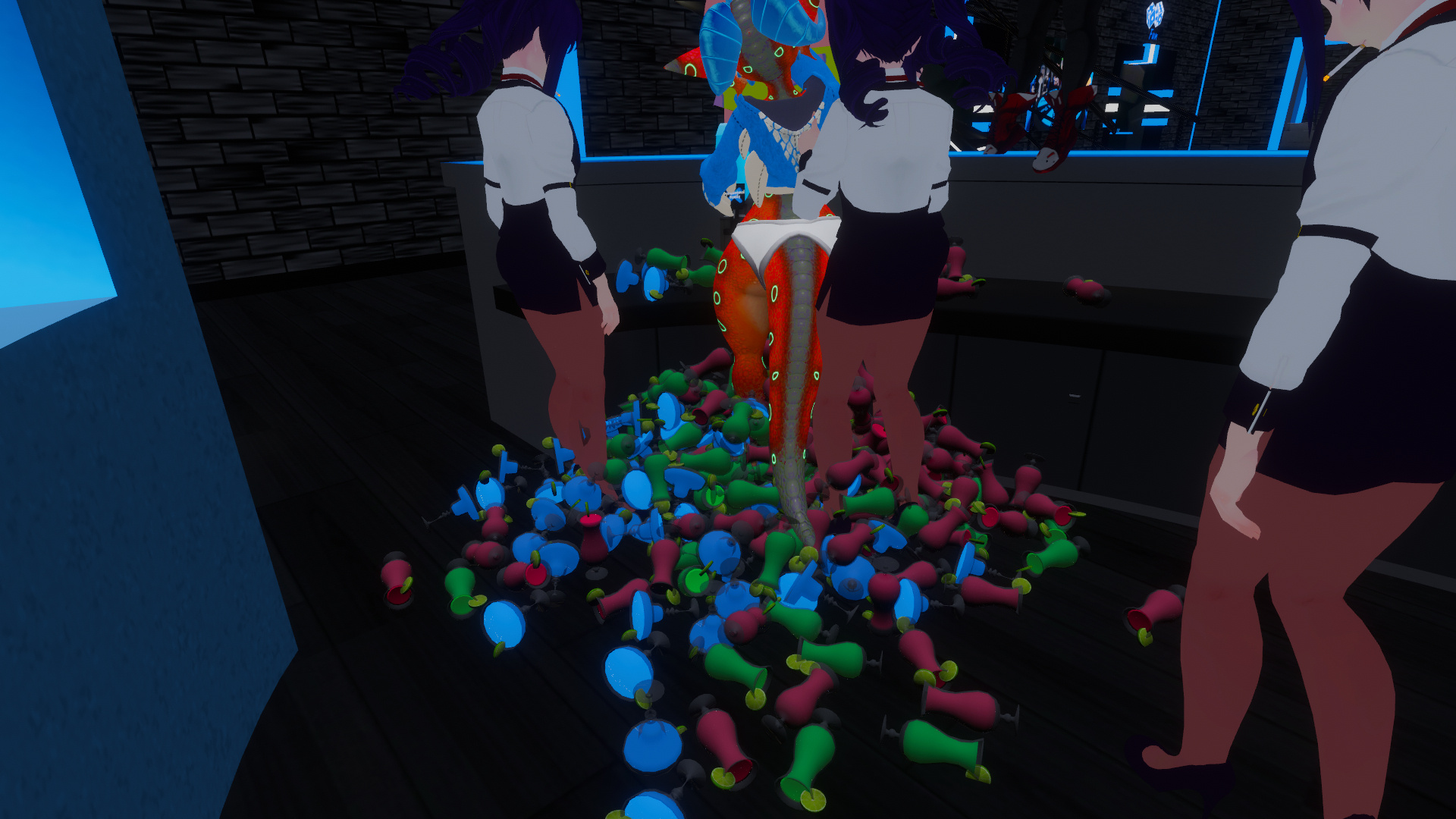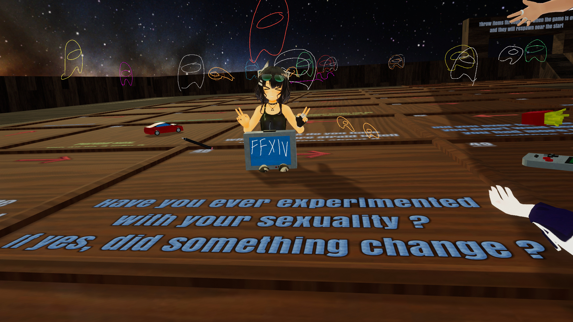 Pictures from my second time in VRchat. Pictured is Me, Vomo, and Aislyn. Stormy was also there, but isn't pictured.