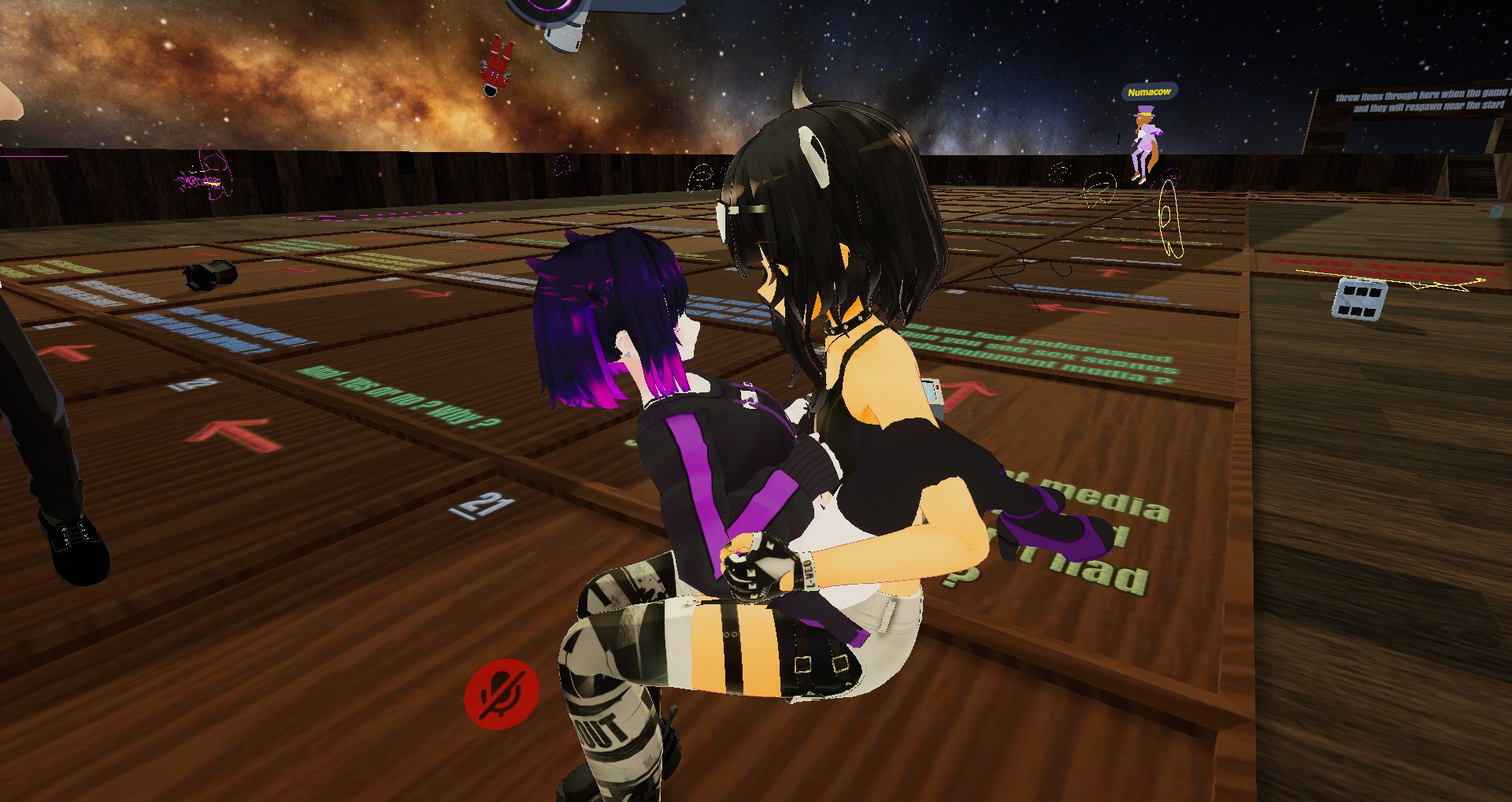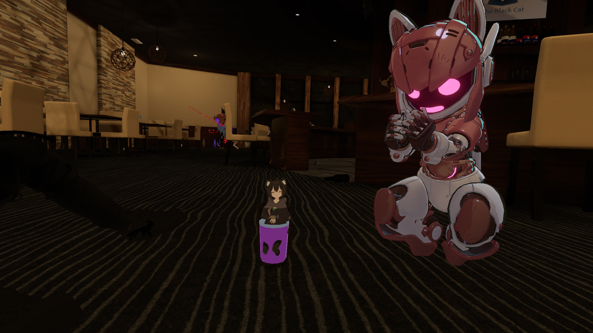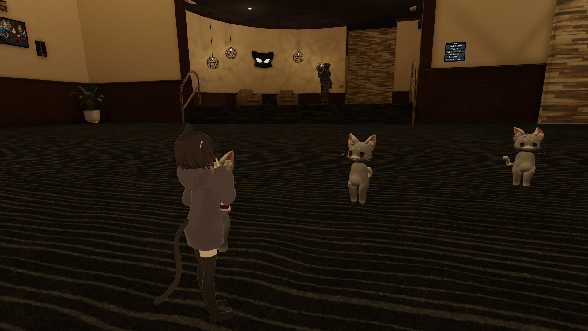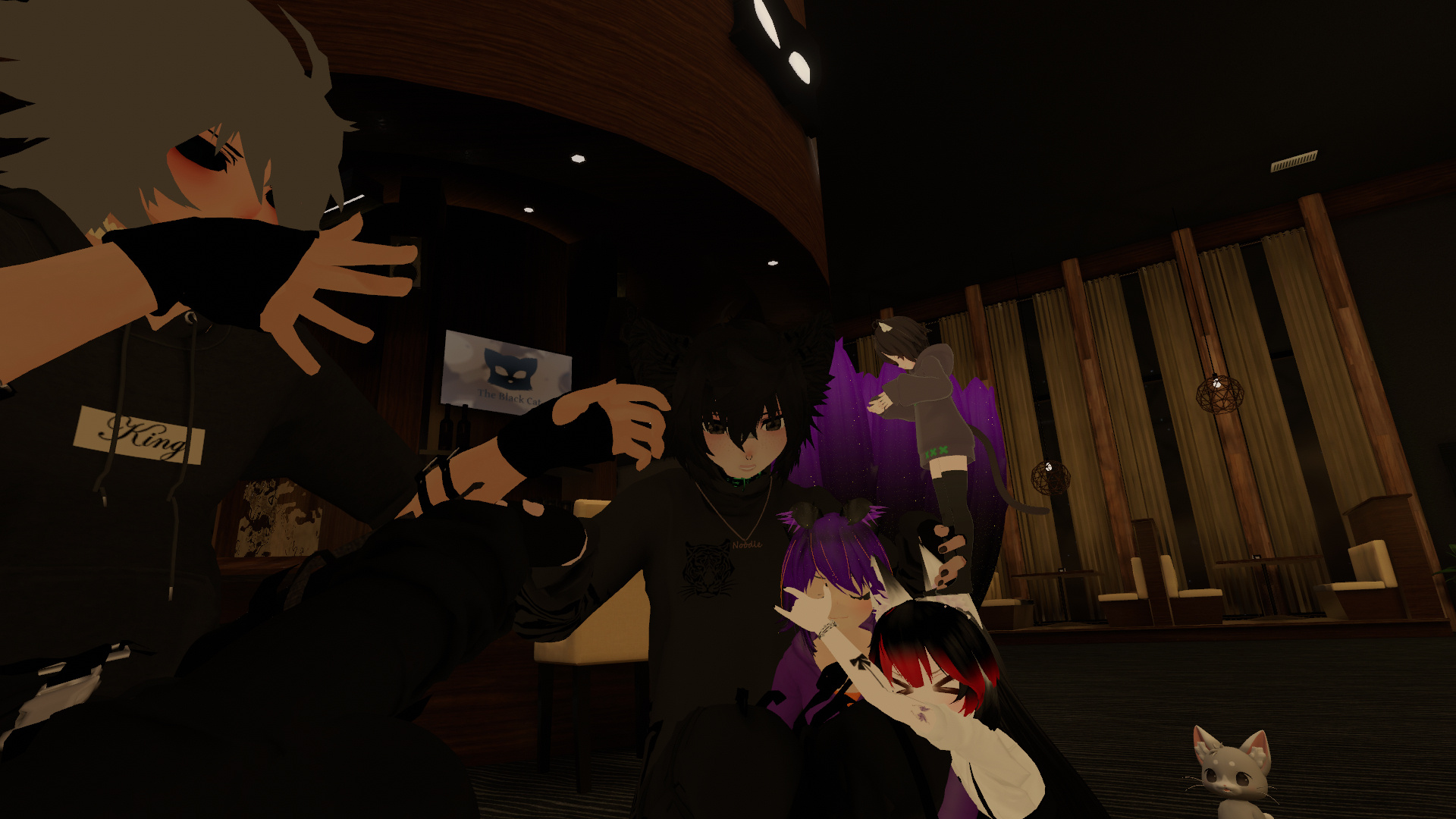 11,aug,2021 Stormy and Cini, happened to be in an avatar world when I hopped on to play solo. Oz joined us and we visited a black cat world an hung out.